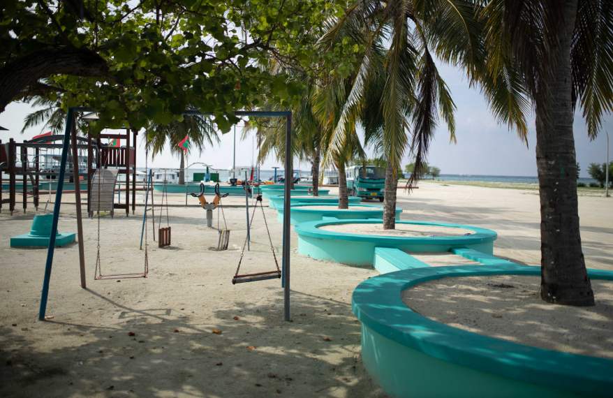 On a little island, where palm trees sway and children play, there are three cars, two doctors and a school. There is also a police station, a court to get married in, a health centre where the two doctors work, a kindergarten, and a whole lot of surfing. This is the idyllic island of Himmafushi.
