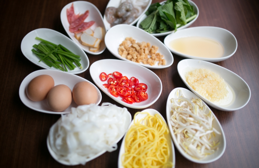 It is recommended to use a cast iron wok for cooking, because the noodles should be fried over a constant medium heat. If you have the time, preparing your own pork lard would also make the world of a difference. The oil will taste fresher and the bits will retain their crispness. Most importantly, don’t rush the stir-frying, otherwise the kway teow and the noodles will break up into small pieces.