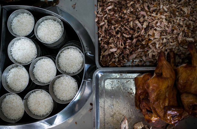 A family business born in 1978, the stall has weathered the years with its traditional recipe of roasted chicken and pork rice. The sound of a heavy cleaver on the chopping board entices, as engines flare from motorists eagerly awaiting their takeaways.